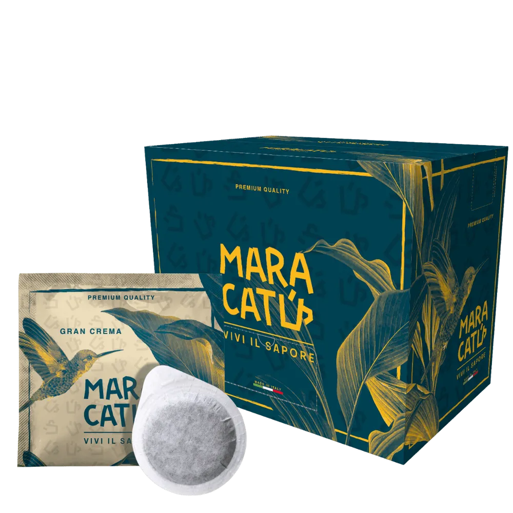 150 cialde Maracatu Gran Crema compatibile ESE 44. Blend cremos si corpolent, cu intensitate 9/10 si crema densa, potrivit pentru un espresso plin si rotund.