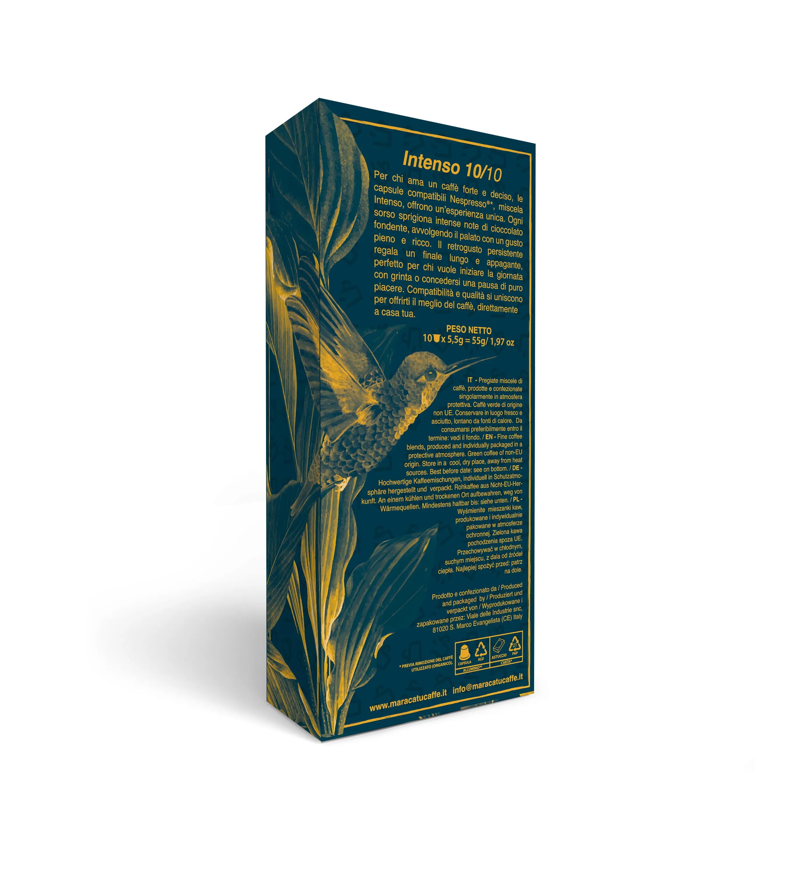 10 capsule Maracatu Intenso compatibile Nespresso, in aluminiu. Cafea intensa, corpolenta si aromata, cu gust persistent pentru cei care prefera espresso puternic.