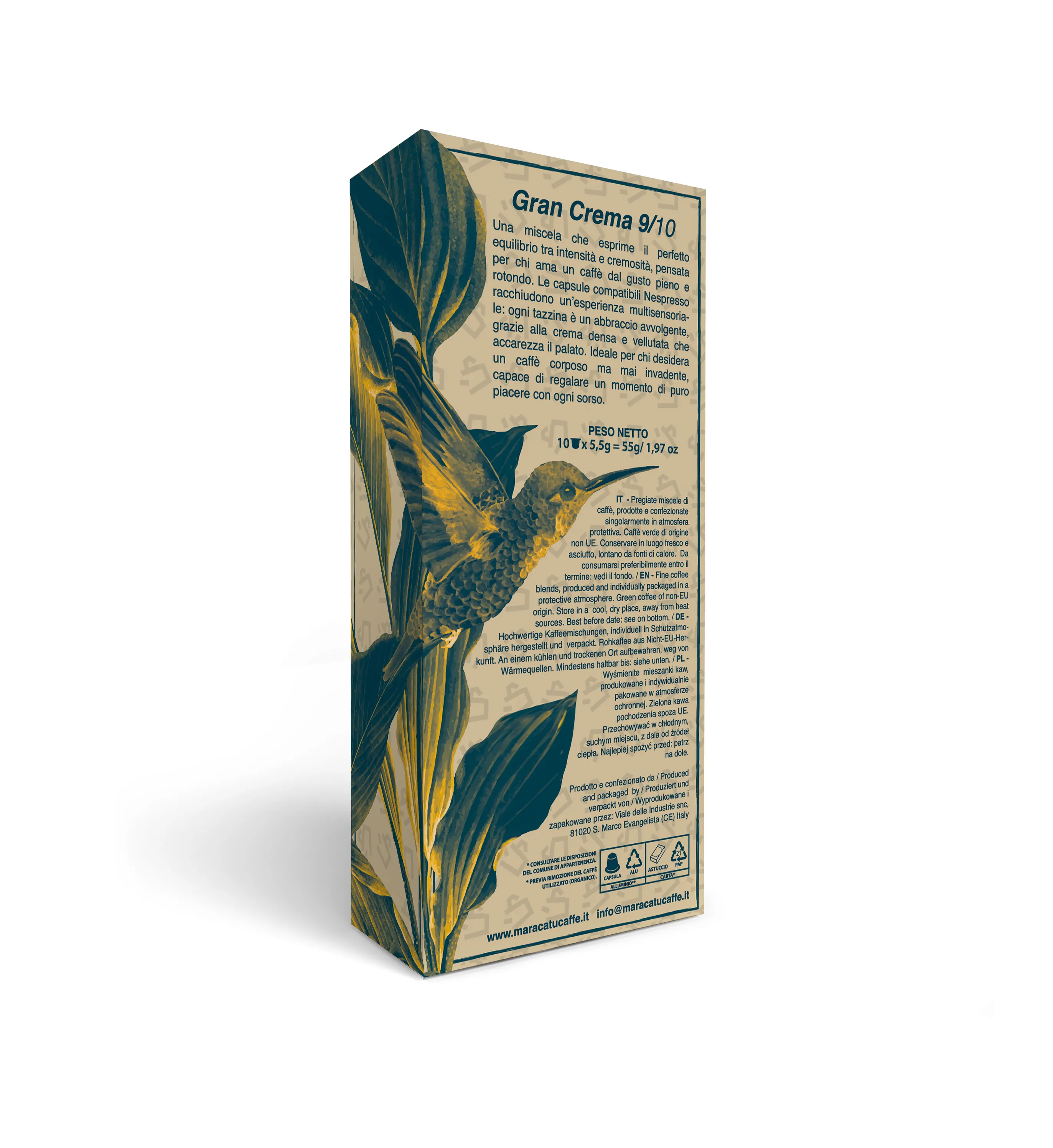 10 capsule Maracatu Gran Crema compatibile Nespresso, in aluminiu. Blend cu crema bogata si textura catifelata, cu gust echilibrat si postgust placut.