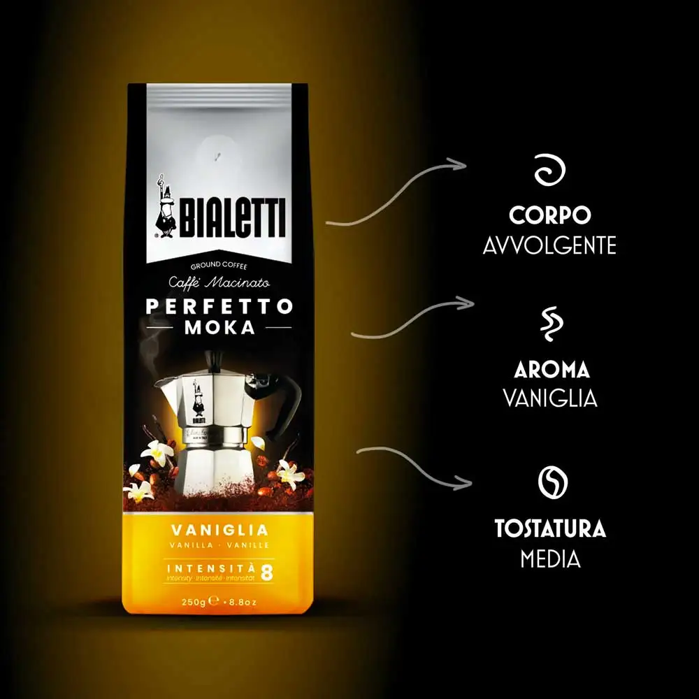 Cafea macinata Bialetti Perfetto Moka Vaniglia, pachet de 250 g.