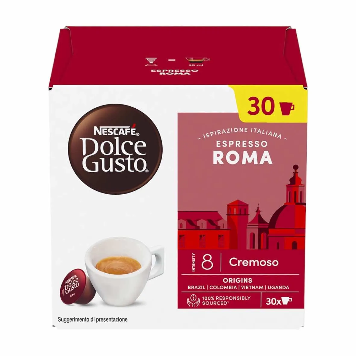 Capsule originale Nescafe Dolce Gusto Espresso Roma, 30 capsule/pachet. Espresso cremos, cu gust echilibrat si note placute de prajire.