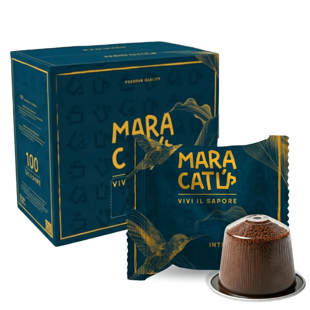 100 capsule Maracatu Intenso compatibile Nespresso. Cafea intensa si corpolenta, cu prajire pronuntata si gust persistent, dedicata celor care prefera un espresso puternic.